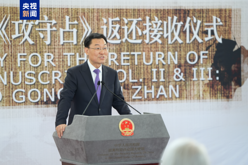 中国驻美大使馆举行子弹库帛书“五行令”和“攻守占”返还接收仪式
